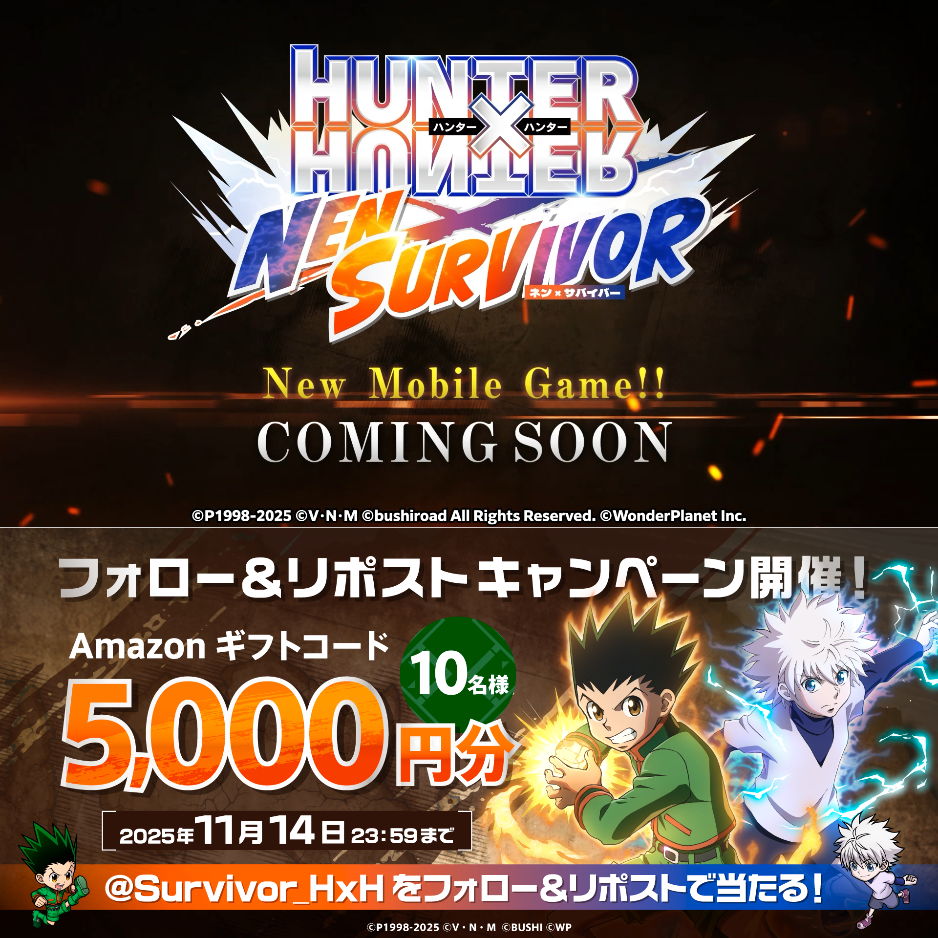 当選者の方にはHUNTER×HUNTER NEN×SURVIVOR公式Xアカウント(@Survivor_HxH)よりご連絡を行います。